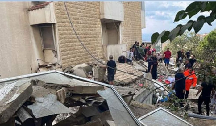 اتشال جثة من تحت الانقاض في مبنى المنصورية