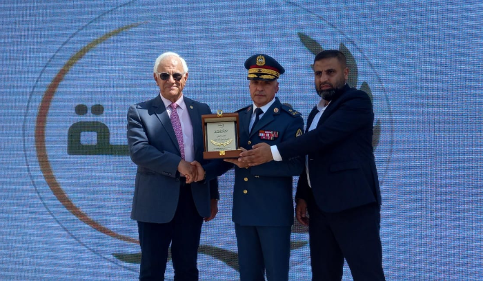 وفي الختام قدمت الجمعيتان درعا تكريمية لقائد الجيش.